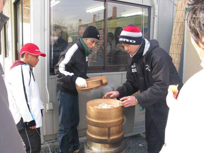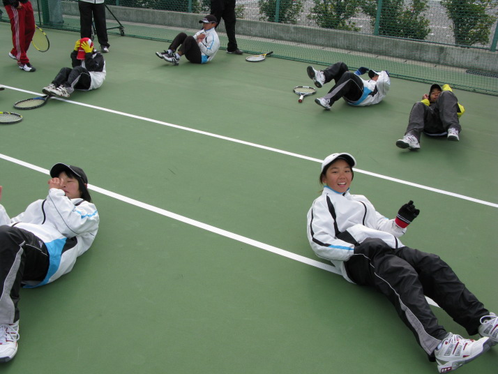 雪の舞う中、凍えながらみんなで腹筋♪(笑)