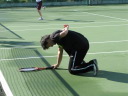 後ろからサーブを当てられたS條さん、