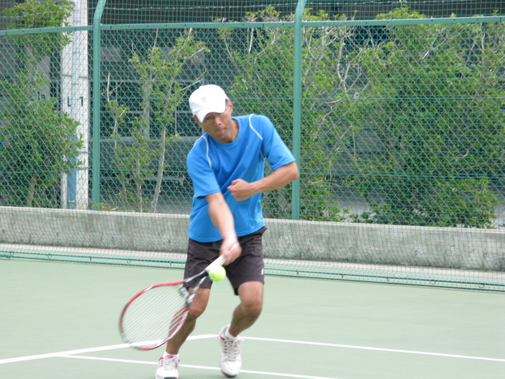 バックハンドとリターン練習を黙々とし続けたF原さん。